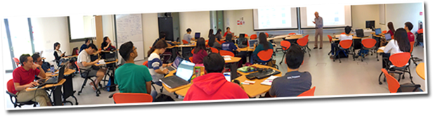Unlike any conventional university courses, we use progressive Active Learning classes based on cohort class setting equiped with TEAL (Technology-Enhanced Active Learning) facilities with easily-reconfigurable movable tables/chairs for all students, 6 ceiling-mounted HD projectors and interactive whiteboards on all sides of the classrooms. Classes are based on practical activities within small groups of students for enhanced engagement and peer-to-peer learning, as opposed to conventional lecturing style. This is part of SUTD's innovative learning pedagogy, pushing the boundaries of multi-disciplinary, active learning, project-based, team-based, cross-subjects methods.